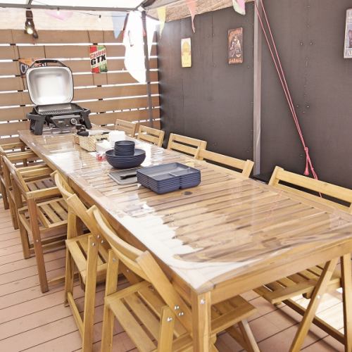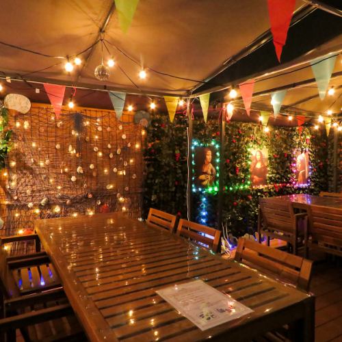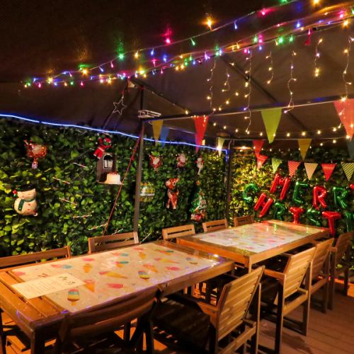 【暑い日も寒い日も、雨の日も安心♪】全席タープ(屋根)付きとなっておりますので、雨の日も日差しが強い日も安心してご利用いただけます。また、冷暖房も完備している為、暑い日も寒い日も快適にご利用いただけます。<鍋 貸切 宴会 テラス 屋上 忘年会 新年会 歓迎会 送別会 昼飲み 昼宴会>