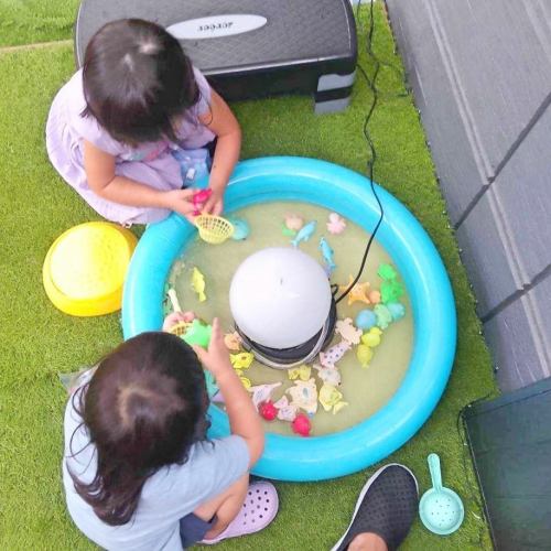お子様連れ大歓迎!ビニールプールで自由に遊べます。水着のご準備だけお願いします。そのほか、お子様が遊べるグッズ多数ご用意しております♪